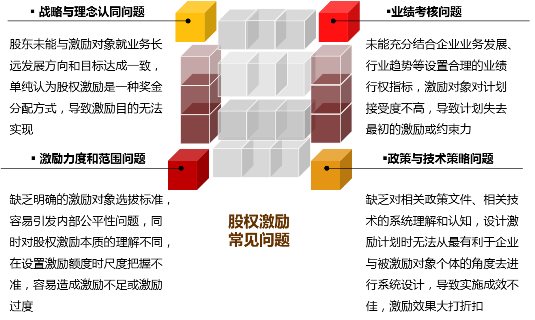 佐佑研究表明,由于股權(quán)激勵(lì)對企業(yè)內(nèi)部管理基礎(chǔ)、人員理念與組織文化匹配性、戰(zhàn)略方向和目標(biāo)清晰性等要求較高,企業(yè)在實(shí)施股權(quán)激勵(lì)時(shí)仍然存在一些共性問題,主要表現(xiàn)在: