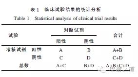 例如臨床試驗(yàn)采用XX 方法的試驗(yàn)設(shè)計(jì)。將樣本編碼,采用對照試劑和考核試劑同時(shí)進(jìn)行檢測,對不符標(biāo)本進(jìn)行復(fù)檢。根據(jù)對照試劑檢測結(jié)果將標(biāo)本分為陽性組和陰性組,將考核試劑檢測結(jié)果與其進(jìn)行比較分析, 用以評價(jià)考核試劑的臨床應(yīng)用性能,并對有效性及安全性提供重要的依據(jù)。
